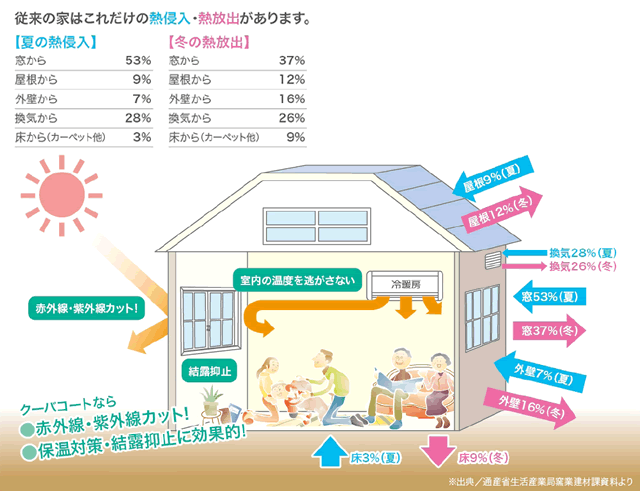 ●夏は直射熱をカットし、暑さを抑制 ●冬は保温対策・結露抑止に効果的