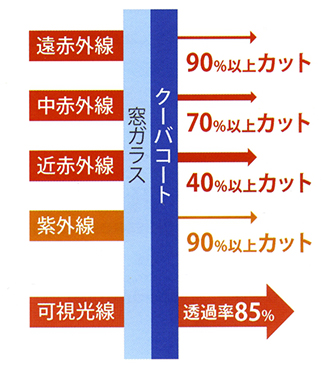クーバコートは、カーテンやブラインドのように部屋を暗くすることなく、紫外線と赤外線を大幅に